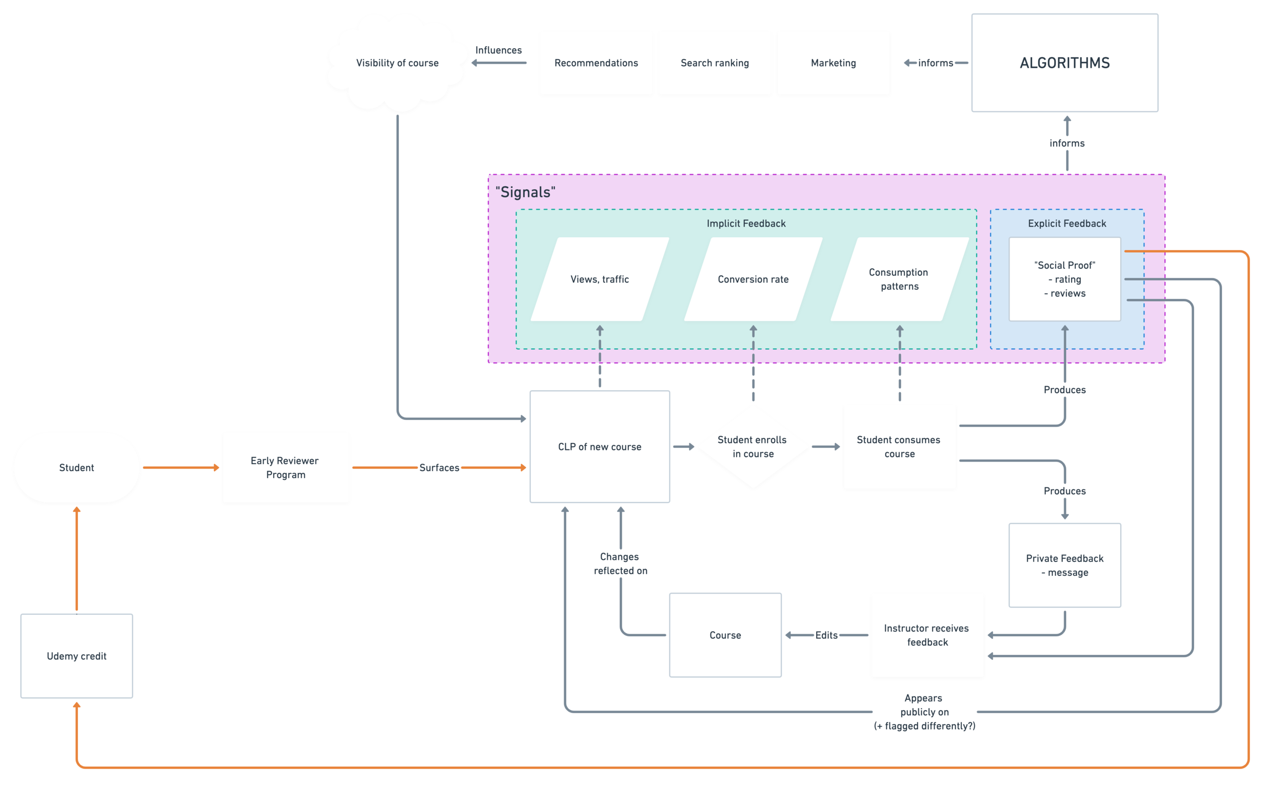 Our first step was to see how this new system fit into the existing ecosystem of Udemy to avoid repeating our earliest first mistakes. These were also used for internal education