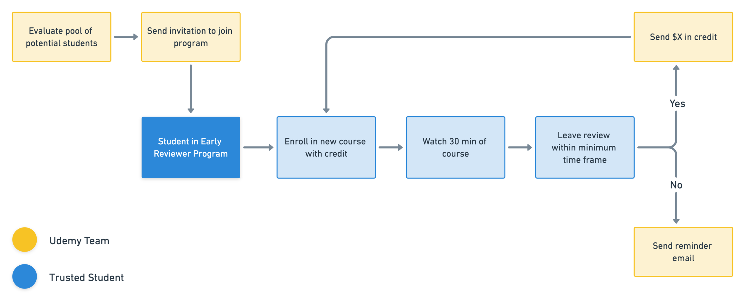 Hundreds of new courses are published every month on Udemy, but few were generating enough revenue to be considered “successful.” As part of our larger initiative, our team designed a program to leverage our most active students to write reviews for new courses.
